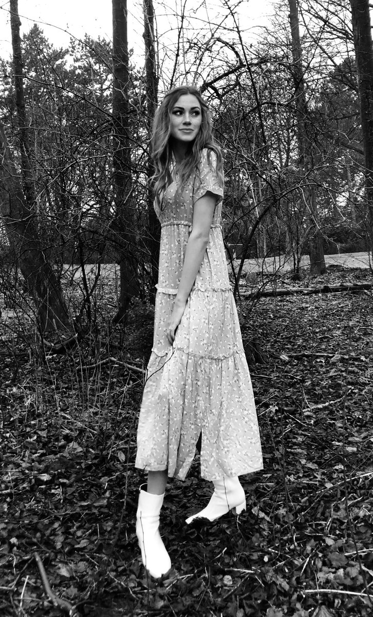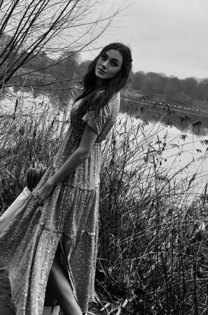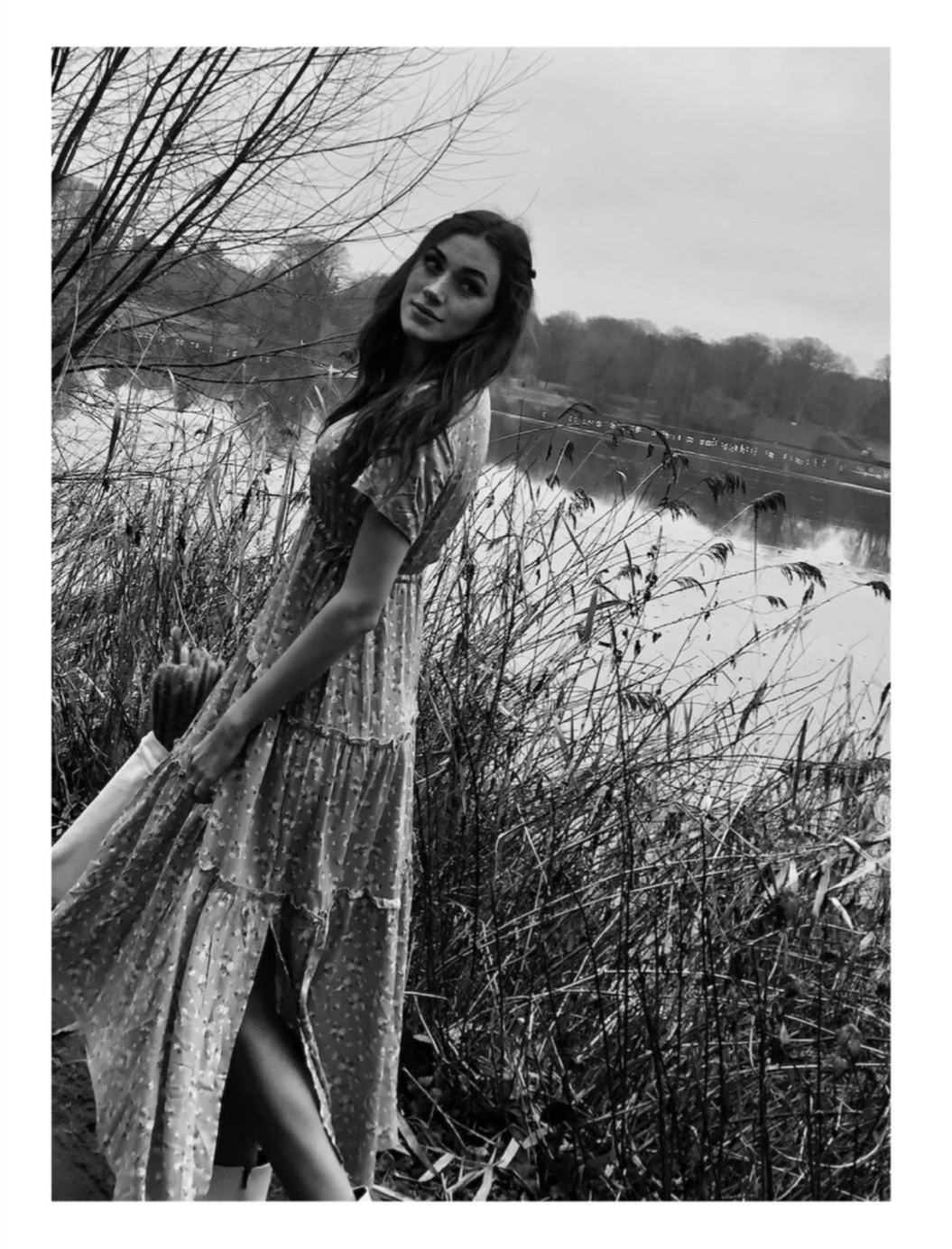 Amidst the lush forest, this editorial celebrates nature's enchanting beauty. A model moves gracefully, harmonizing with the untamed surroundings. Timeless elegance meets the wilderness, inspiring awe for the natural world that surrounds us.